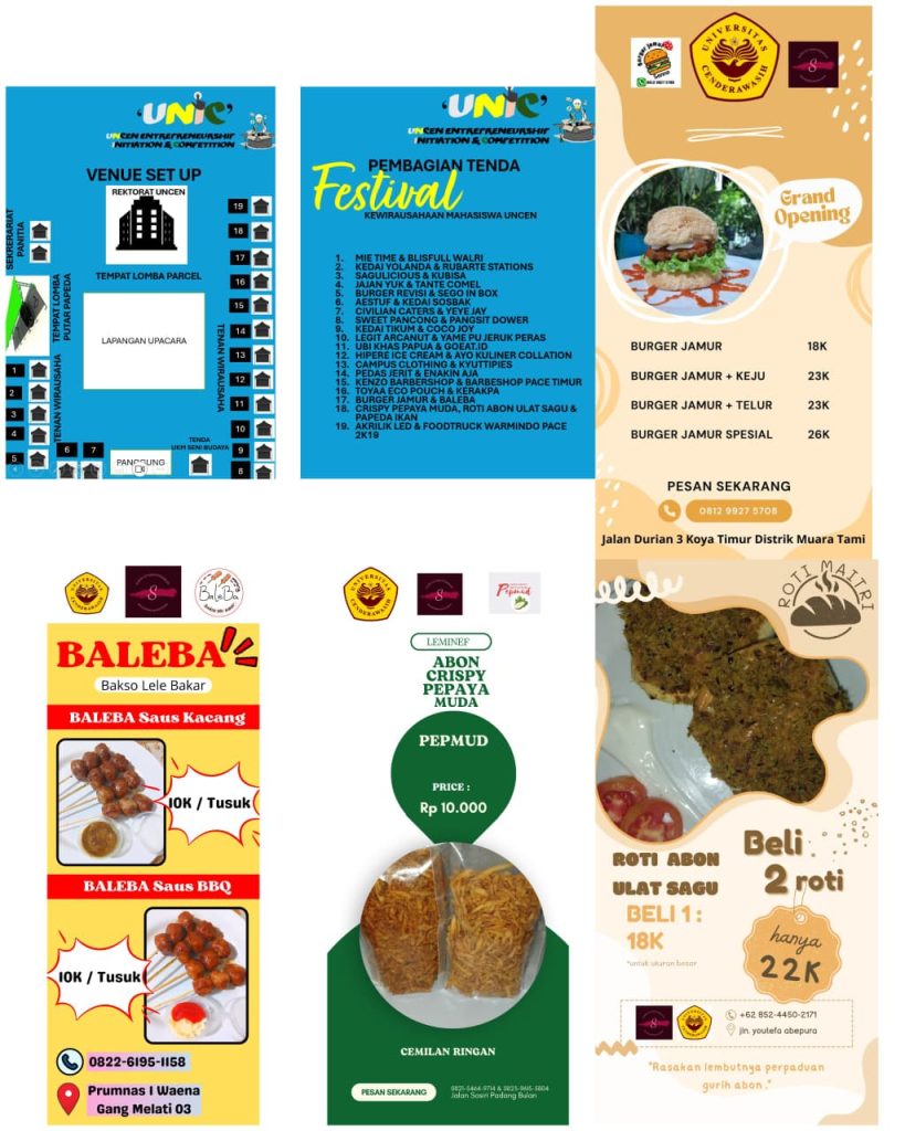 Program studi pendidikan fisika memiliki 4 tim kewirausahaan yang telah mendapatkan apresiasi dari Universitas Cenderawasih dalam kegiatan SUPER 2024. Keempat tim kewirausahaan tersebut adalah Burger Jamur, Bakso Lele Bakar (BALEBA), Crispy Pepaya Muda (PEPMUD), dan Roti Abon Ulat Sagu (ROTI MAITRI). Dalam rangka HUT RI ke-79 maka tim kewirausahaan Universitas Cenderawasih melaksanakan Festival UNIC (Uncen Entrepreneurship Initiation & Competition) di halaman Rektorat Universitas Cenderawasih. Keempat tim kewirausahaan mahasiswa program studi pendidikan fisika mengikuti Festival UNIC yang terdiri dari tim BURGER JAMUR, BALEBA, PEPMUD, dan ROTI MAITRI. Tim BURGER JAMUR dan BALEBA menempati tenda 17, sedangkan tim PEPMUD dan ROTI MAITRI berada pada tenda 18.