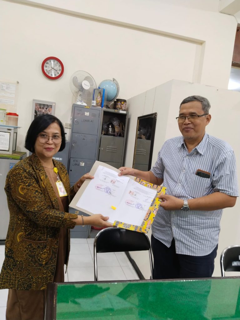 Ketua Program Studi Pendidikan Fisika (Dr. Indah Slamet Budiarti, M.Pd) FKIP Universitas Cenderawasih bersama Ketua Program Studi Pendidikan Fisika (Drs. Bambang Supriadi, M.Sc) FKIP Universitas Jember melakukan penandatanganan IA terkait Tridharma Perguruan Tinggi di ruang senat FKIP Universitas Jember pada Tanggal 2 Oktober 2024. IA memuat tentang Tridharma Perguruan Tinggi, pendidikan dan pengajaran, penelitian, dan pengabdian kepada masyarakat.